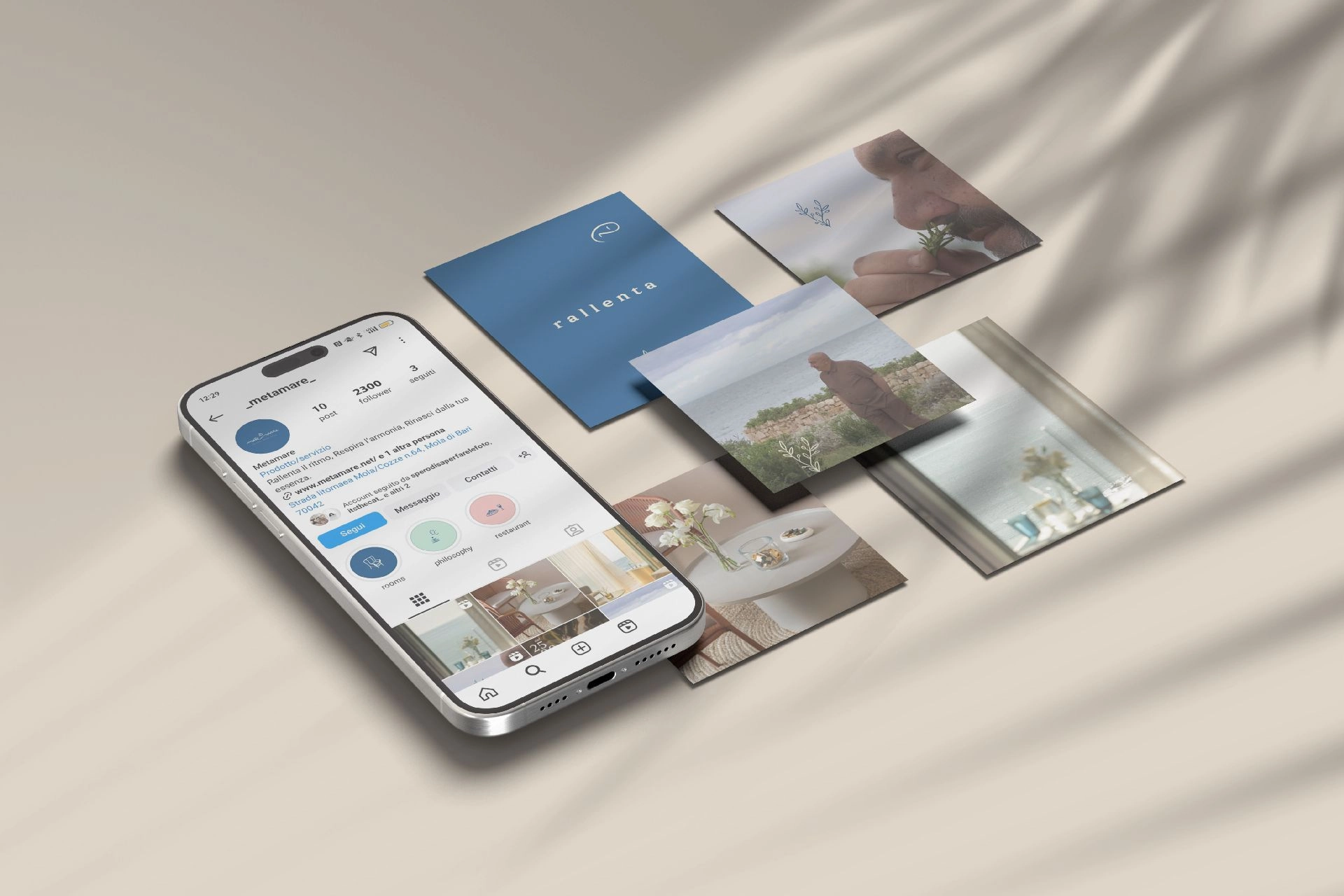 Abbiamo progettato un’identità visiva che esprime la lentezza e la naturalezza del mare, catturandone il ritmo autentico. Il logo e l’immagine coordinata combinano eleganza e modernità, riflettendo la filosofia di Metamare: autenticità, libertà e scoperta, senza fretta, seguendo il tempo della natura.